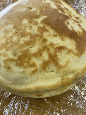 いつもはパンorおにぎりだが 今日は昨晩に作ったホットケーキ