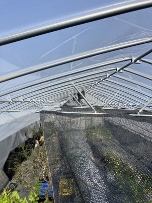 ※ 写真の黒いやつ ハウス外でファンが風で回りハウス内を負圧化