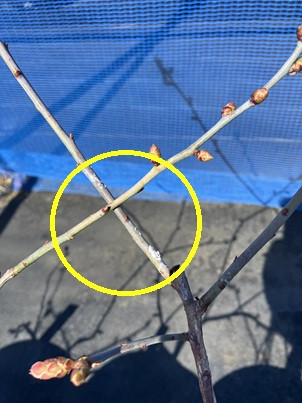 過剰な肥料成分は枝いに白く析出される