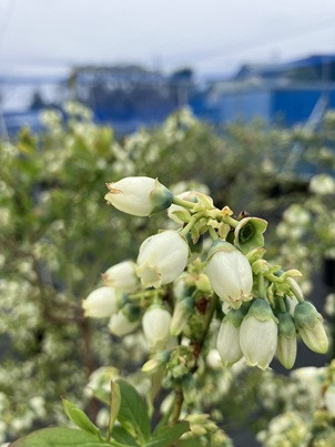 下に向いて咲くブルーベリーの花