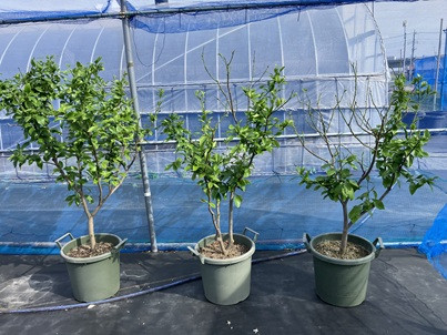 50cm高に切られた1本のレモン苗木