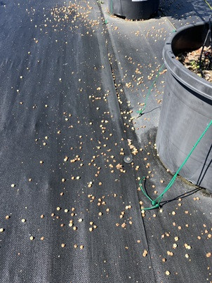 花殻が防草シート上にたくさん落下していた